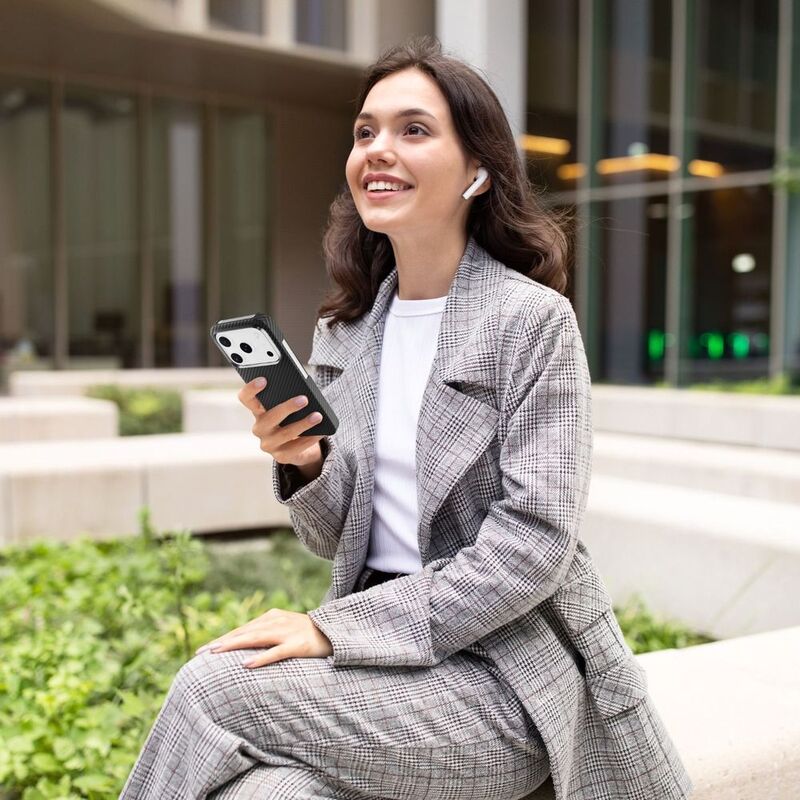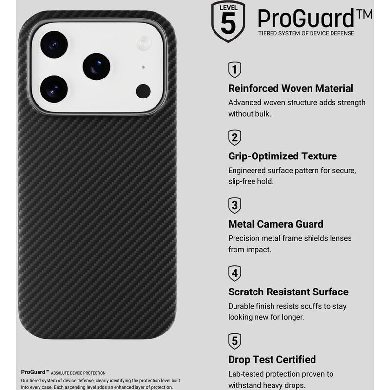 Real Kevlar weave for ultra-durable finish High-grade TPU Frame with PC backing Laser-textured surface for anti-slip grip Raised edges for screen & camera protection Slim and lightweight despite high resilience MagSafe Compatible with embedded magnetic ring
