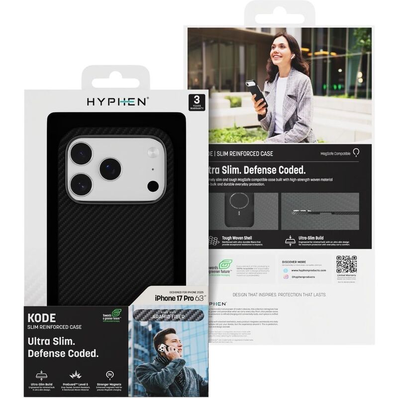 HYPHEN KODE Slim Aramid Fiber MagSafe Case - Black - iPhone 17 Pro - 6.3"