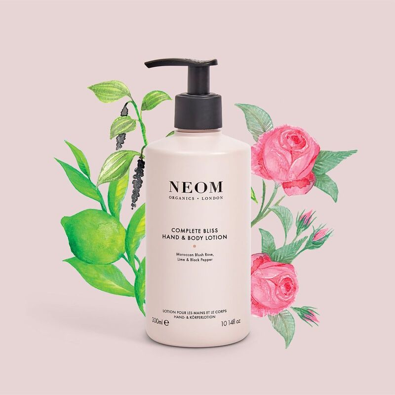 Neom Wellbeing Complete Bliss Hand & Body Lotion (300ml) - Moroccan Blush Rose / Lime / Black Pepper