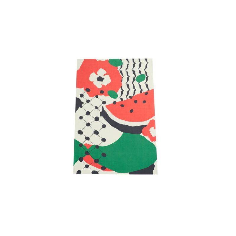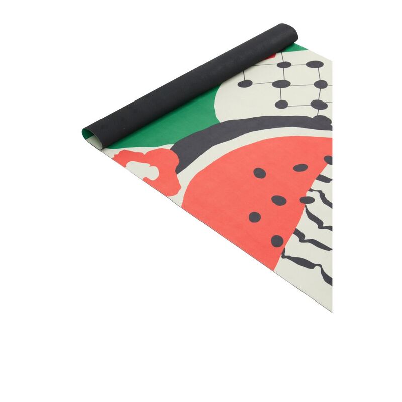 Named after the famous Darwish poem, the ‘Min Houna' mat encapsulates various iconic symbols. The fishing net and olive leave pattern typically found on the keffiyeh, the native poppy and the watermelon, which has recently been reignited as a symbol of resistance. Various cultural symbols intertwine in unison within the harmonious structure of the dome.