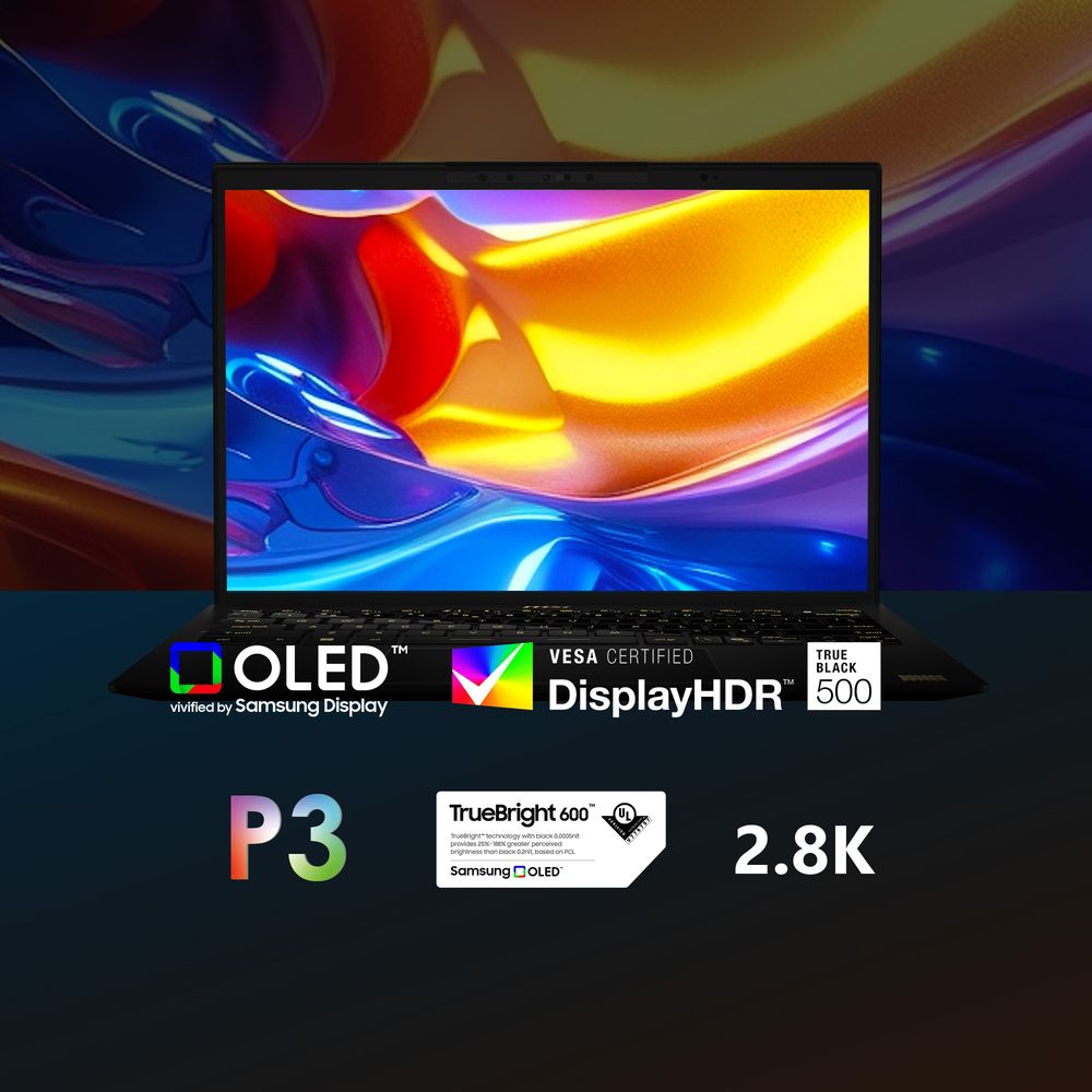 • 13.3” 2.8K (2880 x 1800), 16:10, 100% DCI-P3 (Typical),