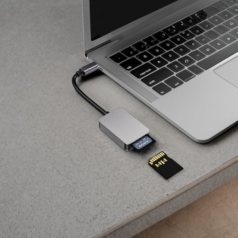 Dual Card Slots: It features both an SD card slot and a Micro SD card slot, providing flexibility to work with various types of memory cards commonly used in different devices.