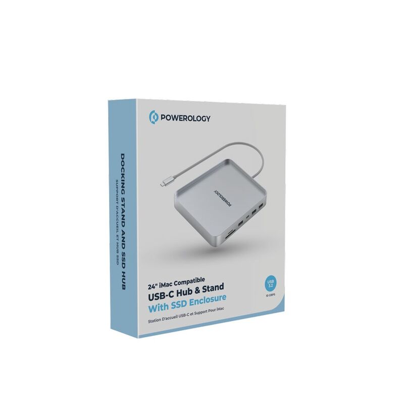 Powerology 24-Inch USB-C Hub & Stand with SSD Enclosure (iMac Compatible)