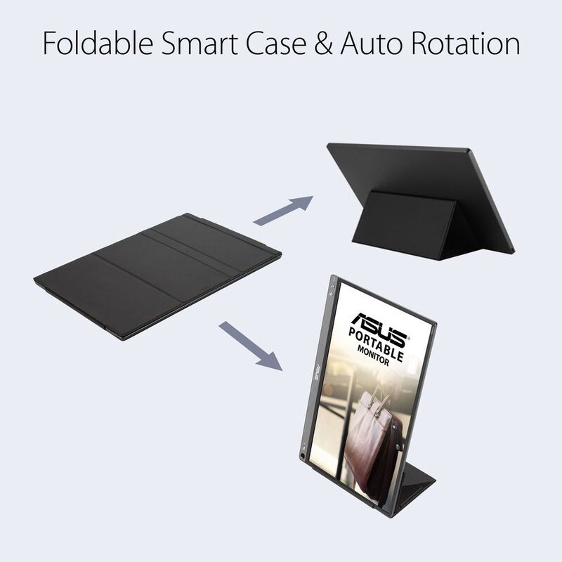 - Foldable smart case can be turned into a stand to prop the monitor up in either portrait or landscape mode