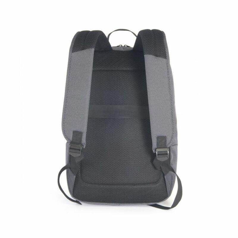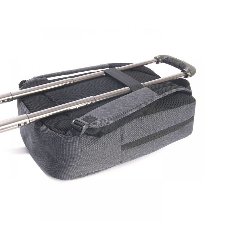 Backpack for Laptop 15.6" and MacBook Pro 16" made with fabric produced from recycled plastic. The convenient and roomy interior compartment features a protective pocket for your device. The adjustable, padded shoulder straps together with the ergonomic back, and external front pocket, make it convenient and useful for both work and leisure. Equipped with a trolley strap.