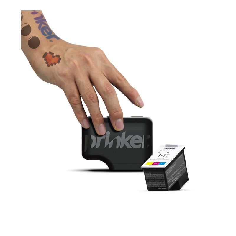 - CHOOSE FULL COLOR OR BLACK INK: The Prinker M1 ink cartridge offers both vivid color temporary tattoos and black temporary tattoos. Get old-school phrases, minimal shapes, or bold designs from the app—or DIY your own pieces that speak your mind. Upload any design and use the Prinker to glide it on skin in seconds. Each ink cartridge applies about 1,000 tattoos. Max. tattoo size is 0.7 inch x 39 inches (W x L).