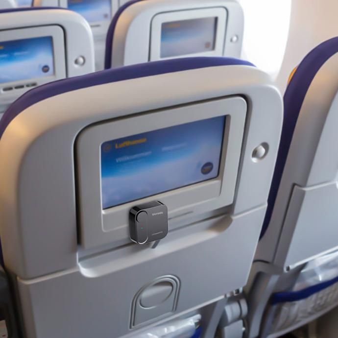 • Wirelessly transmit audio signal from the in-flight entertainment systems, fitness machines, gaming devices or TV to Bluetooth Headset.