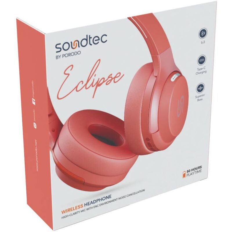Porodo Soundtec Eclipse Wireless Over-Ear Headphone - Red