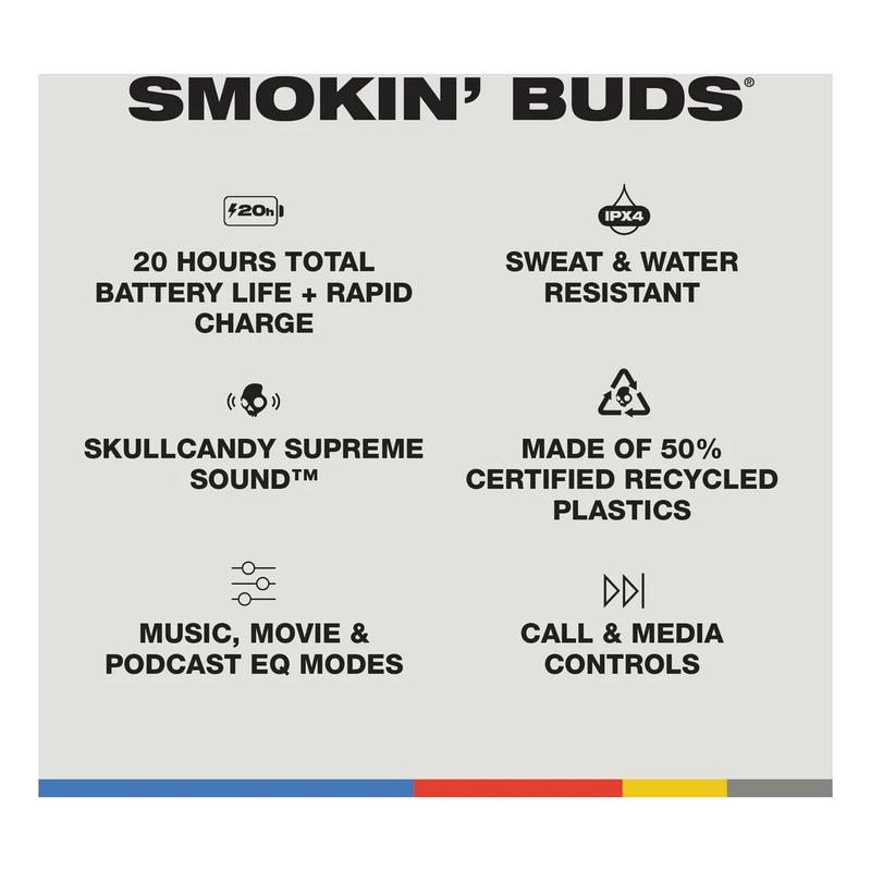 SLEEK FIT, ELEVATED SOUND. On the road to high-tech, feature-packed earbuds, some manufacturers have forgotten what people really want — full, clear sound. We haven’t. That’s the reason for Smokin’ Buds. Sure, they come with touch controls, EQ modes and a mic in each earbud. But the priority is big, clean sound and lots of it.