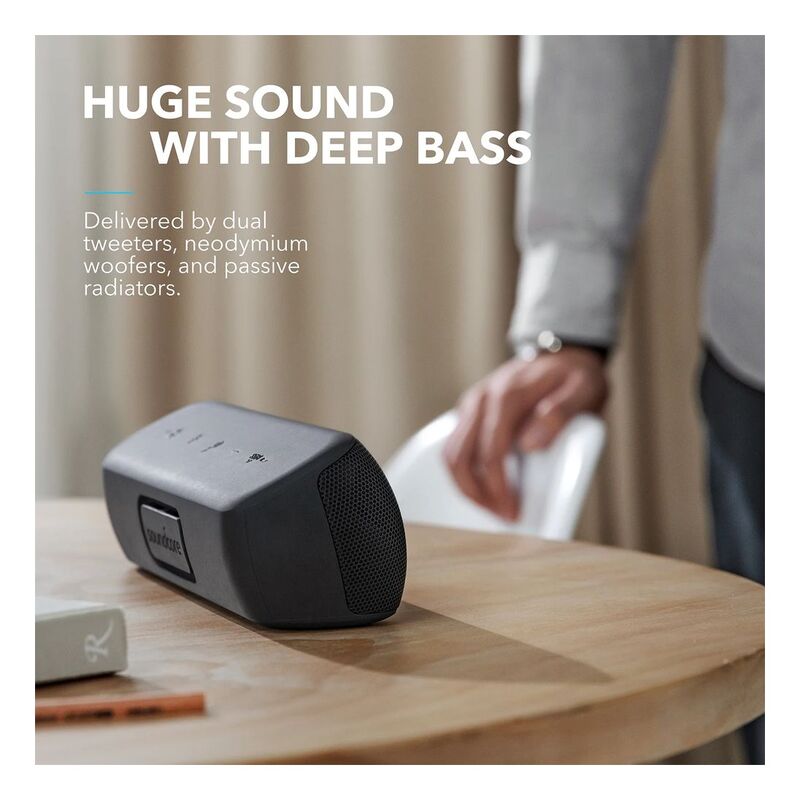 - Huge sound with intense bass: packed with two Ultra high-frequency tweeters, neodymium woofers, and passive radiators to fill every corner of your room with 30W of rich sound. Low frequencies are enhanced in real-time by our exclusive bassuptm technology.