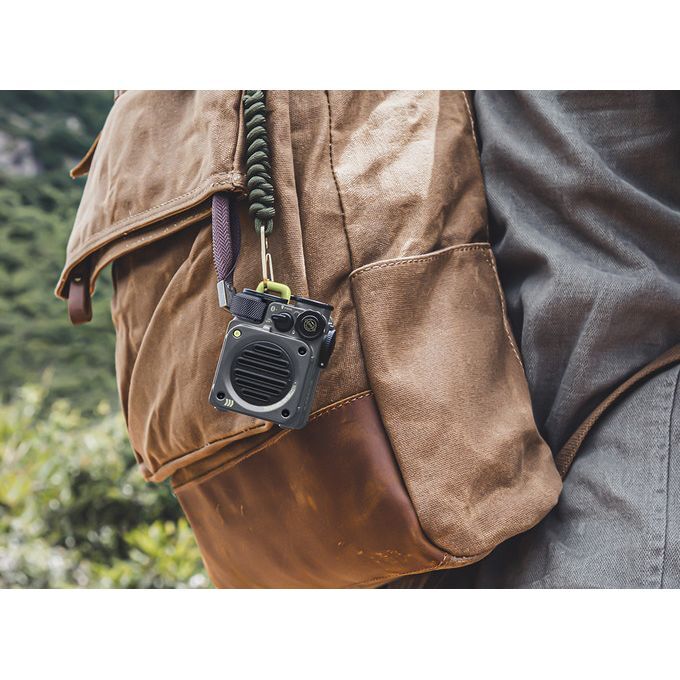 The Wild Mini rugged outdoor Bluetooth speaker delivers powerful 360° sound from its compact zinc alloy body built to withstand adventure. The military-inspired design is water resistant, durable and weighs just 248g for portability while attaching to backpacks and bikes. The IPX5 rating, 8hr battery life, and 3-mode flashlight. It offers durability and utility for your wildest outdoor experiences.