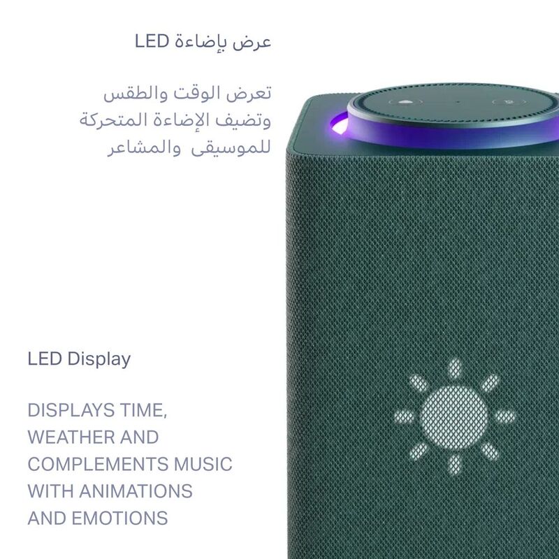 - When YASMINA is not busy with anything, the LED screen shows the time or weather. And when you talk to her, she complements the answers with animation and expresses emotions. Say something nice to YASMINA and she'll wink at you.