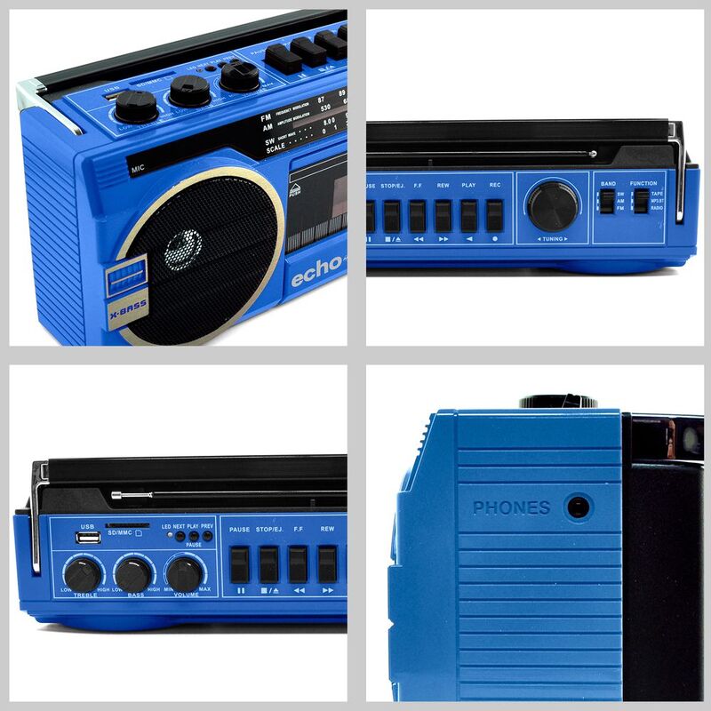 Echo Audio Retro Blast Radio Cassette Player With Bluetooth - Blue