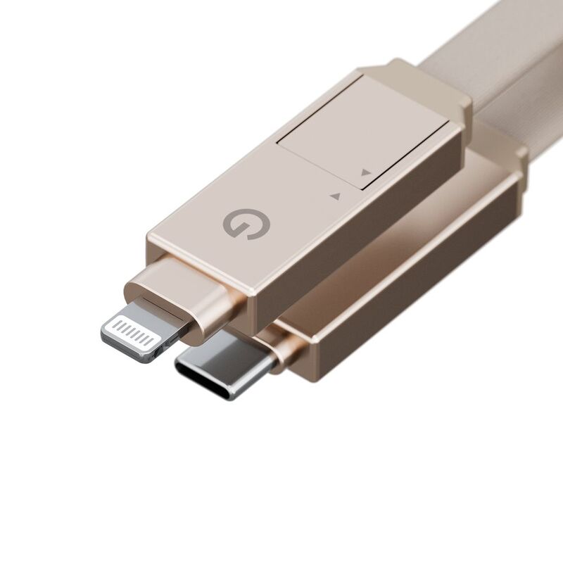 Energea Sheath 2-In-1 C To C + Lightning Cable/ 480Mbps/ 60W/ 15cm -Gold