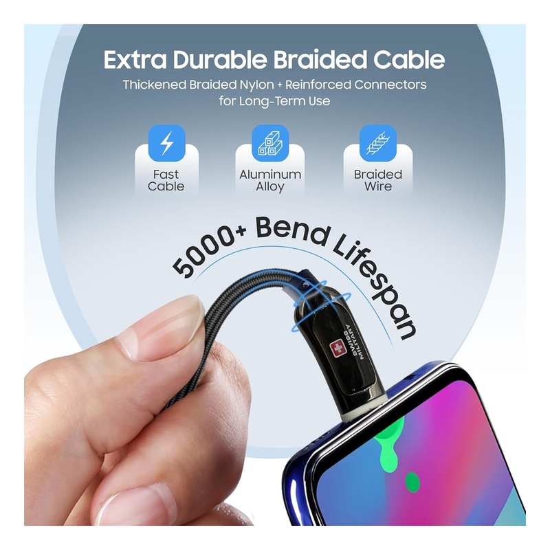 Swiss Military 100W USB-C To USB-C Braided Cable With LED 1m - Black