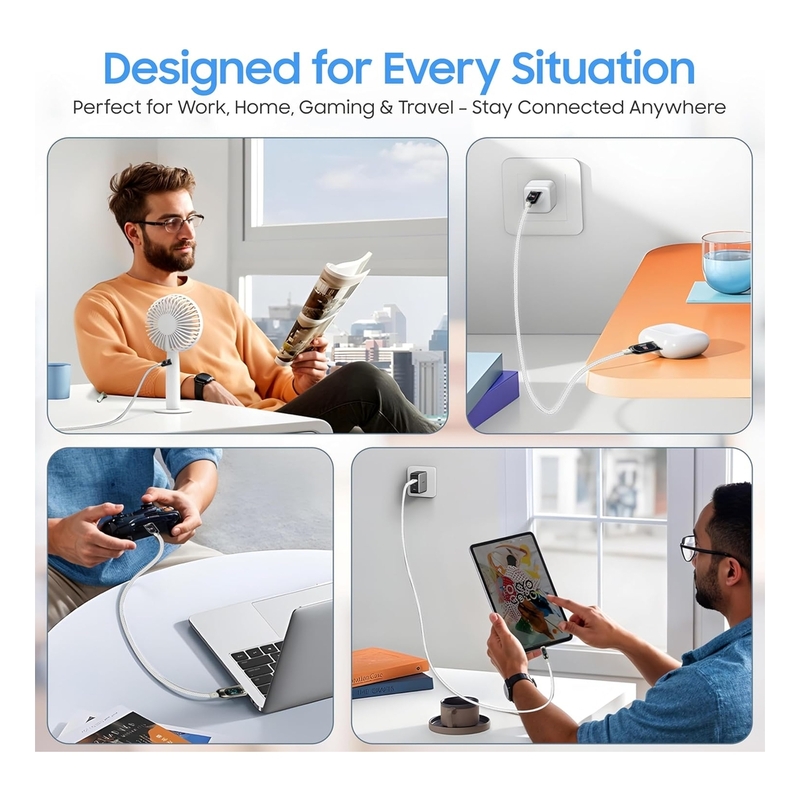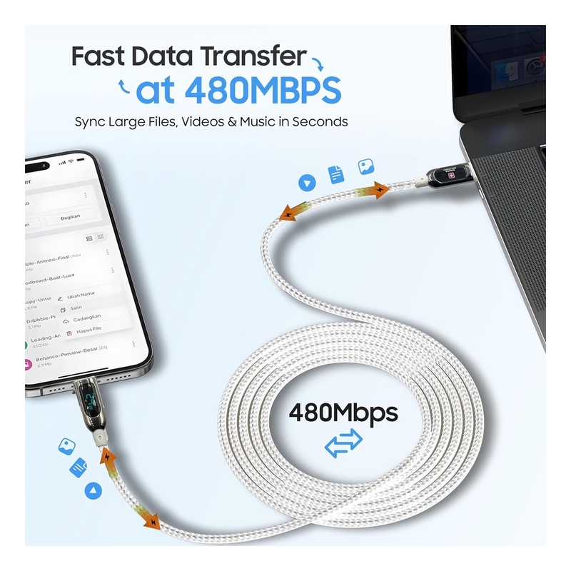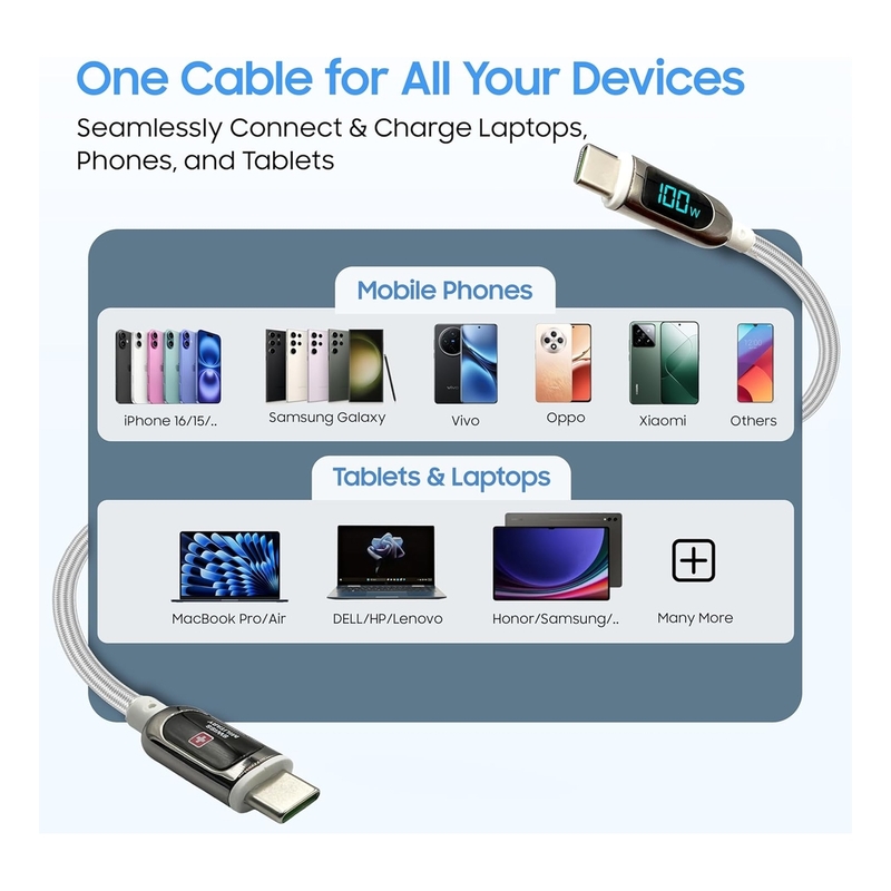 Swiss Military 100W USB-C To USB-C Braided Cable With LED 1m - White