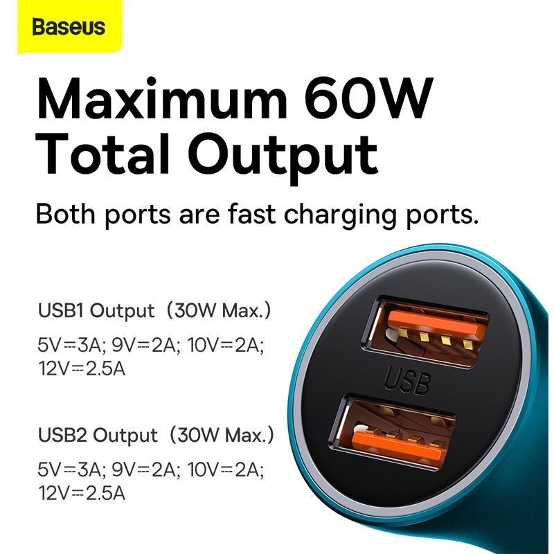 Baseus Golden Contactor Max Dual Fast Charger Car Charger USB-A + USB-C 60W - Blue
