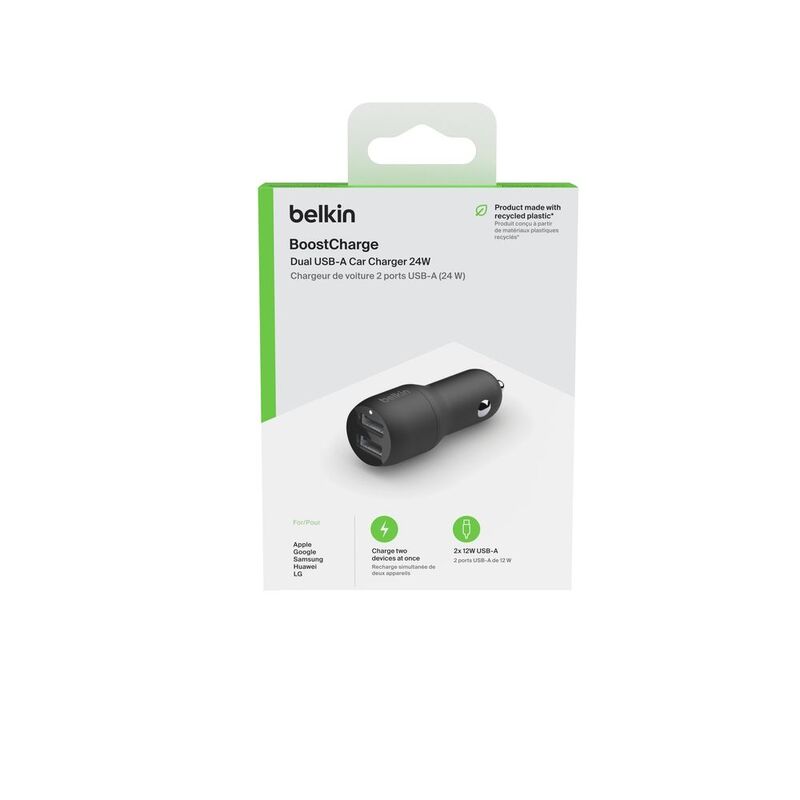 Belkin Boostcharge Dual USB-A 24W Car Charger - Black