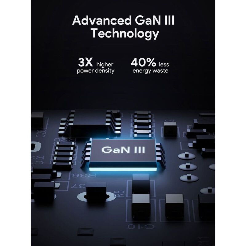 Fast charge your devices at a speed of up to 30W.. The third-generation GaN chip is safe, energy-efficient, low-carbon and environmentally friendly. With 3D stacking technology, it's made to be smaller to grab in your hand easily and carry around for your trip. Higher power in a smaller size.