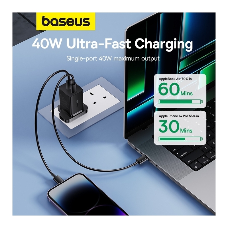 Baseus GaN5 Pro Fast Charger C+C 40W UK - Black