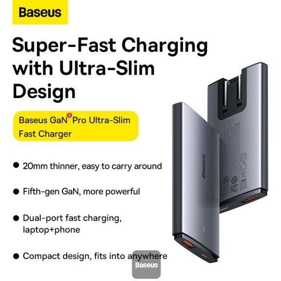 Baseus GaN5 Pro Ultra-Slim Fast Charger C+U 65W - Overseas Edition