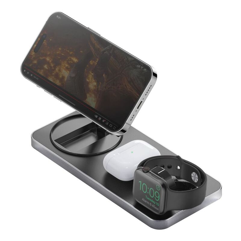 Bazic GoMag Station 3-in-1 Magnetic Fast Wireless Charger with Built-In Apple Watch Charger - Black