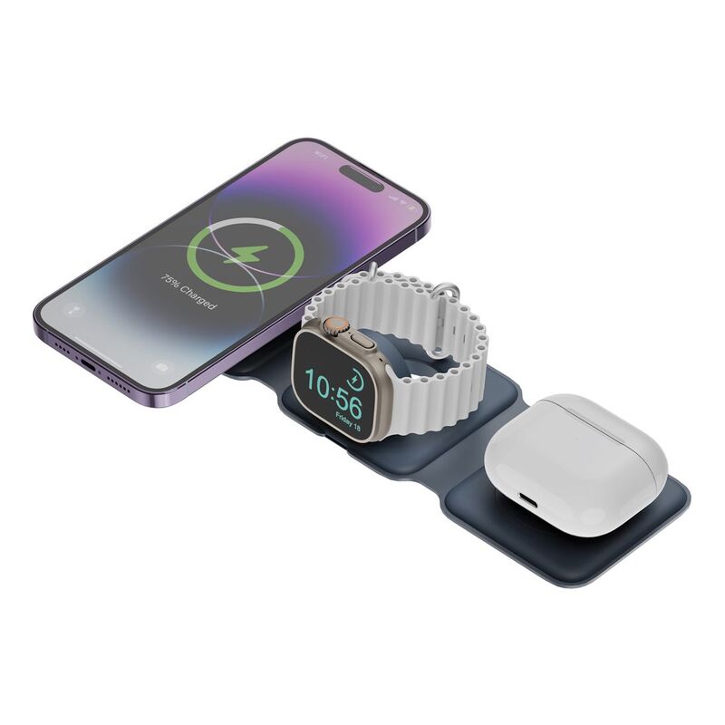 Bazic Gomag Trio 3-in-1 Foldable Magnetic Wireless Charger 15W iPhone/Watch/Airpods - Navy Blue
