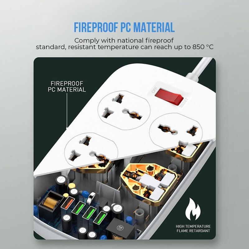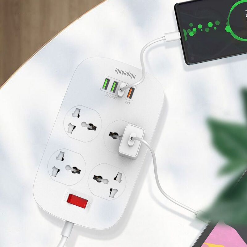 Blupebble Surge Protection 4 Universal Socket with 3 Usb Port + Qc3.0