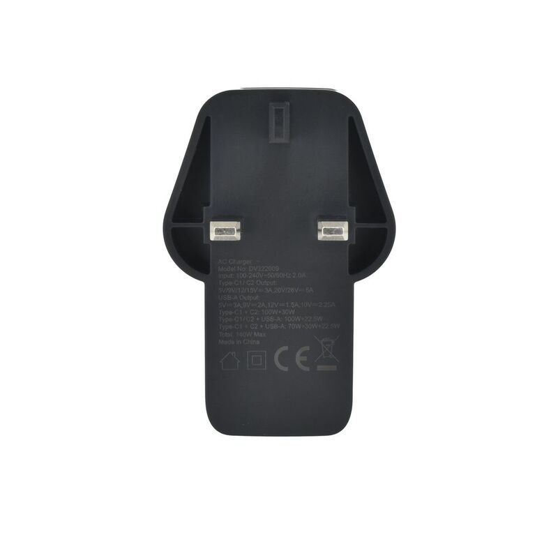 Dviced Wall Charger Cable 140W Gan 2 USB-C 1 USB-A (UK) - Black