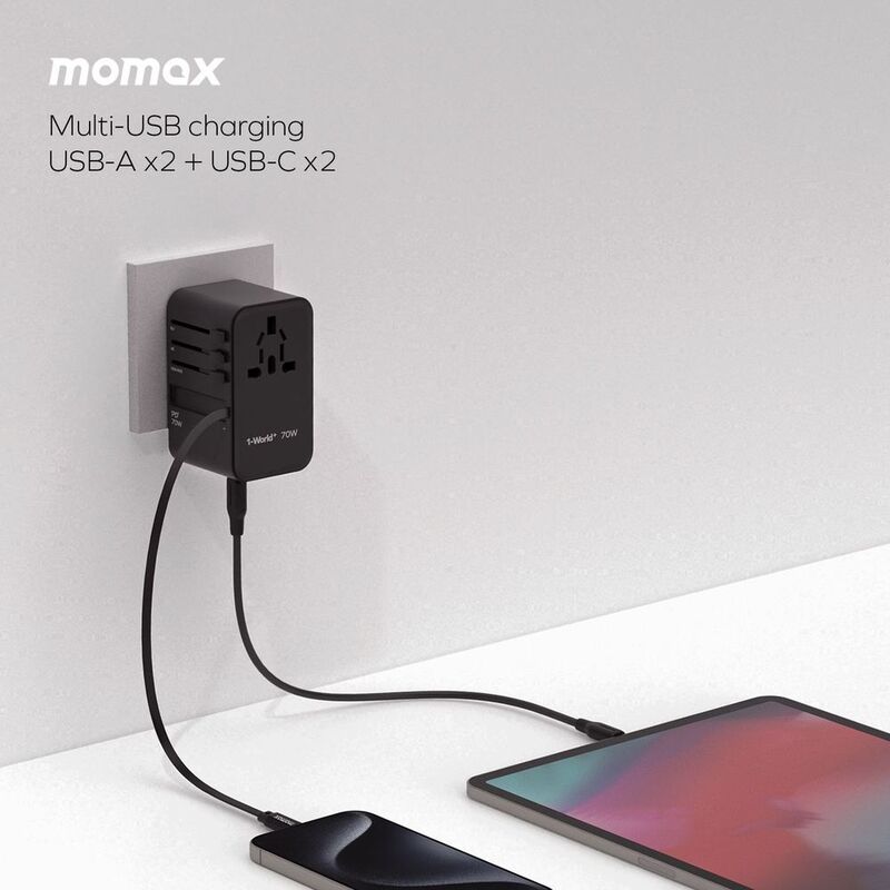 - Effortless Connectivity Anywhere, AnytimeMomax understands the frustration of dealing with different socket specifications while traveling. That's why we've designed the 1-World Travel Adaptor to be perfectly compatible with global socket specifications. Whether you find yourself in London, Tokyo, or New York, you can trust that your devices will stay powered up.