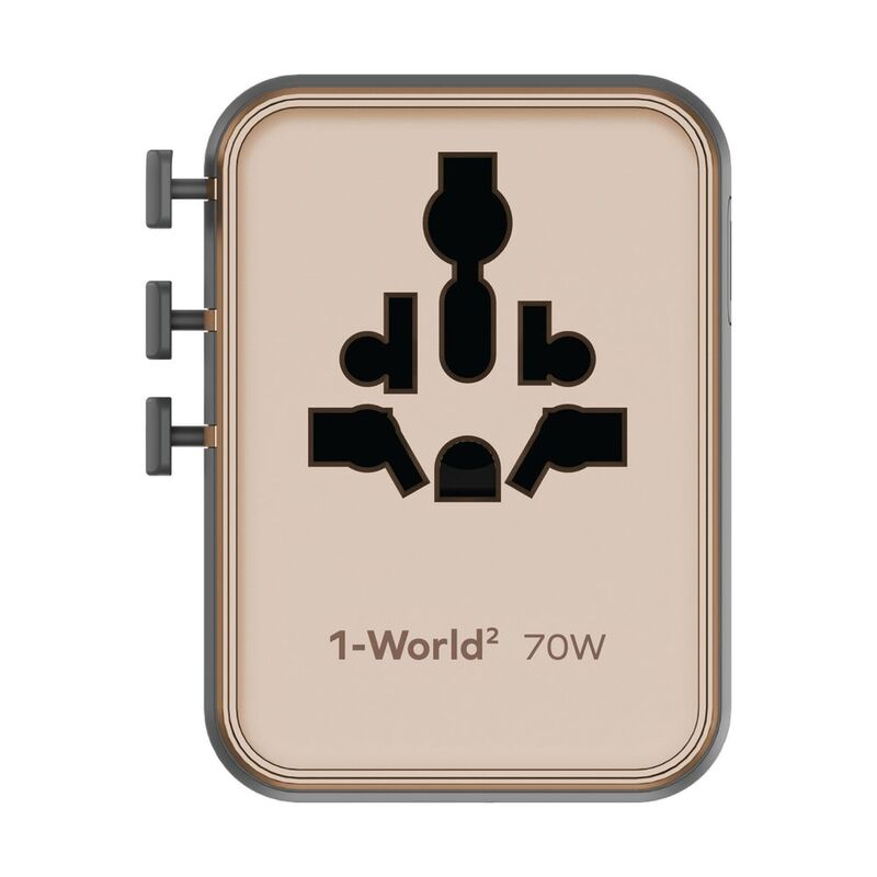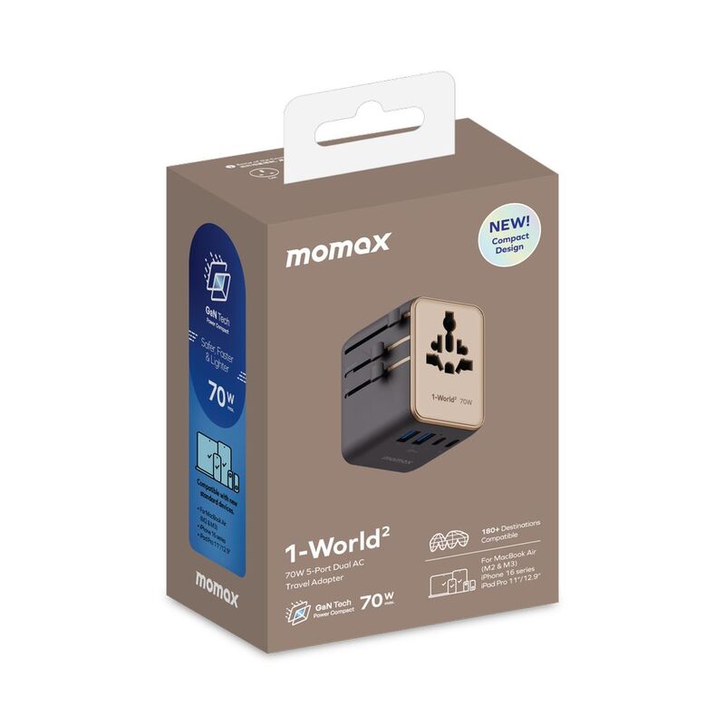 Momax 1-World2 Gan 70W 5-Port USB-C Ac Travel Adaptor - Desert Titanium