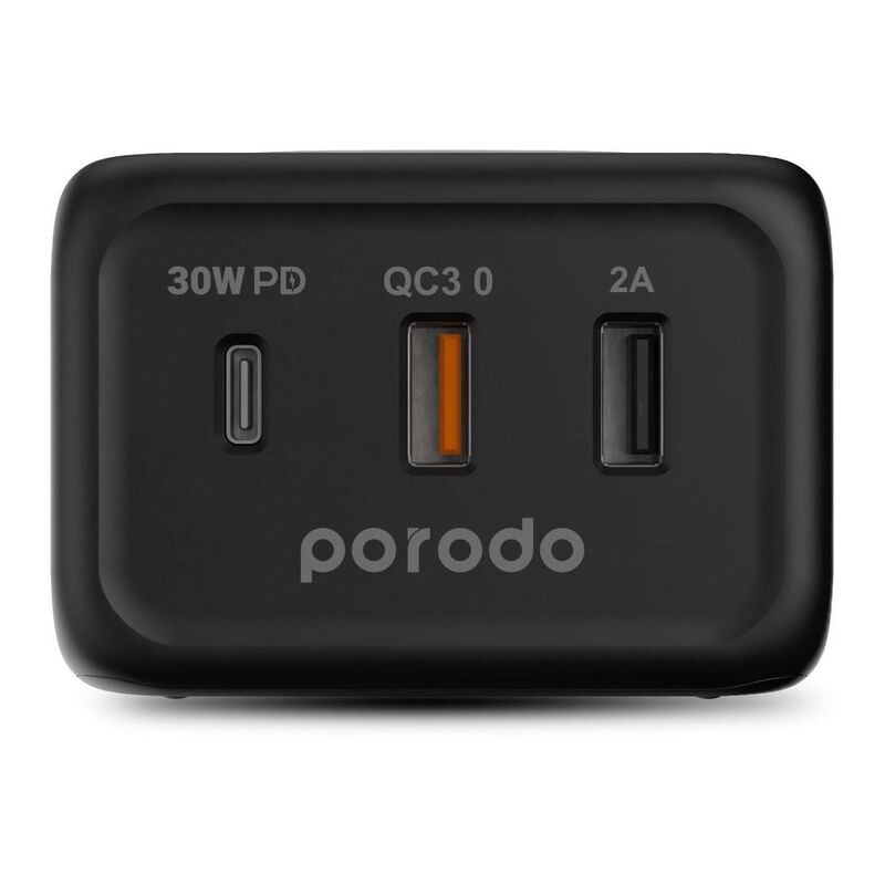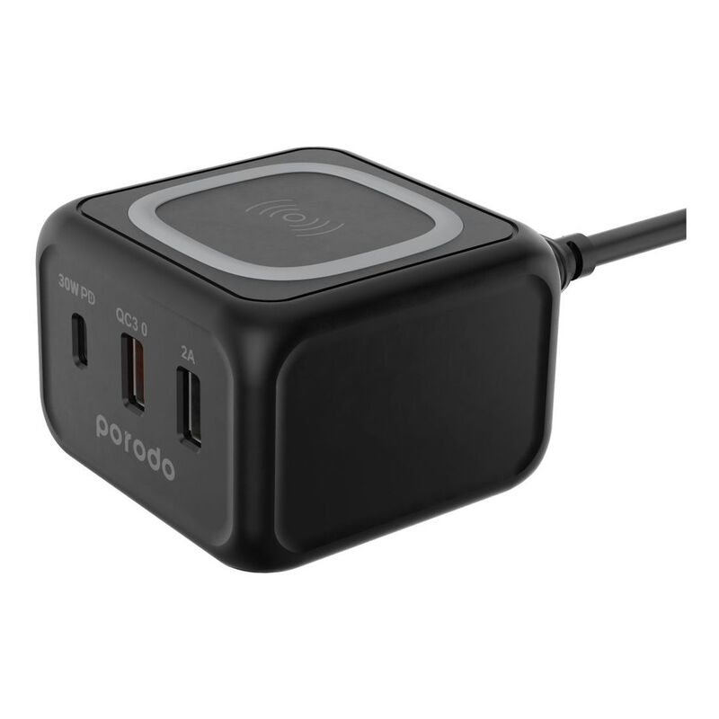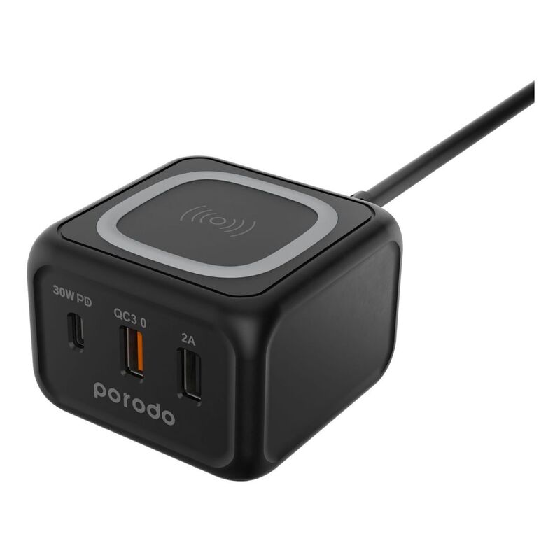 Porodo 3-Port 30W PD with 15W Fast Wireless Charger Black