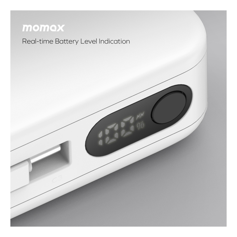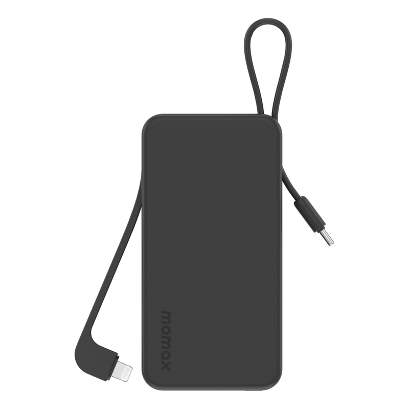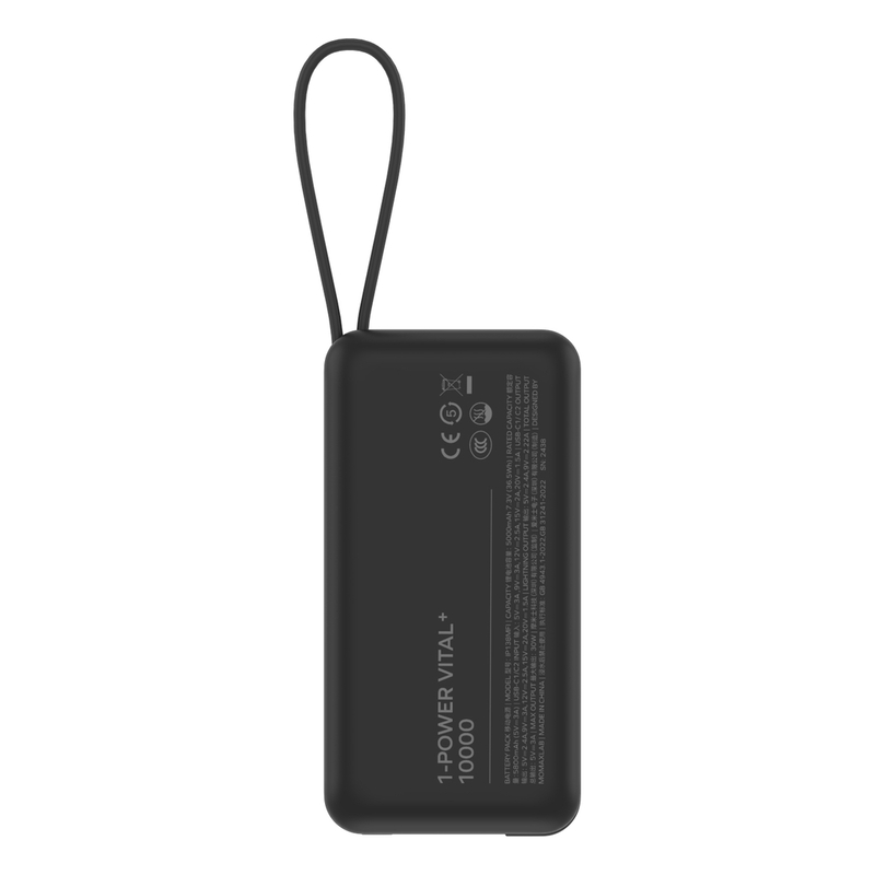 Momax 1-Power Vital+ 10000mAh Power Bank With Built In USB-C & Lightning Cable - Black