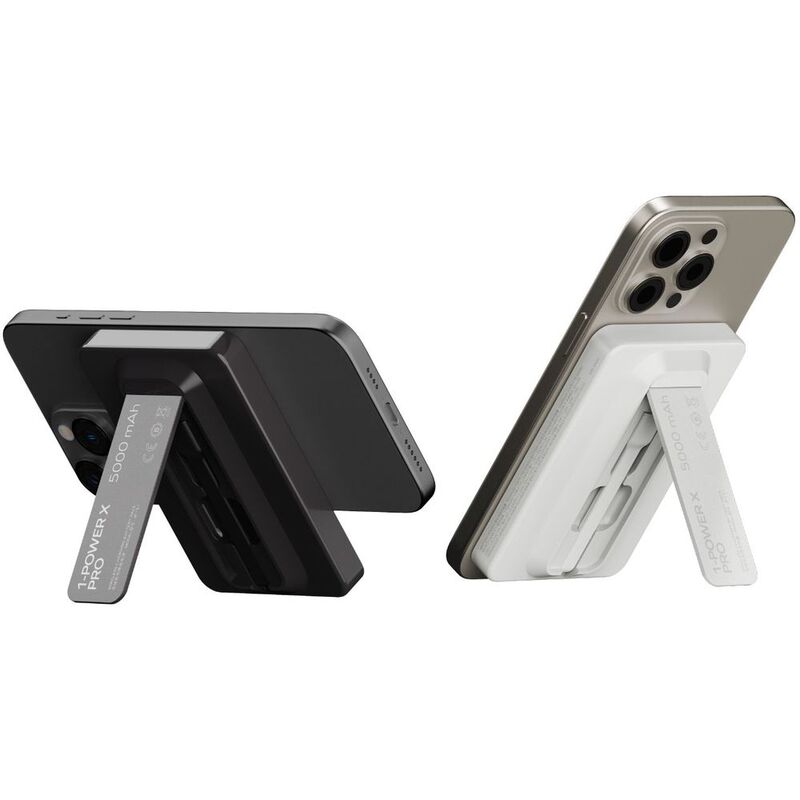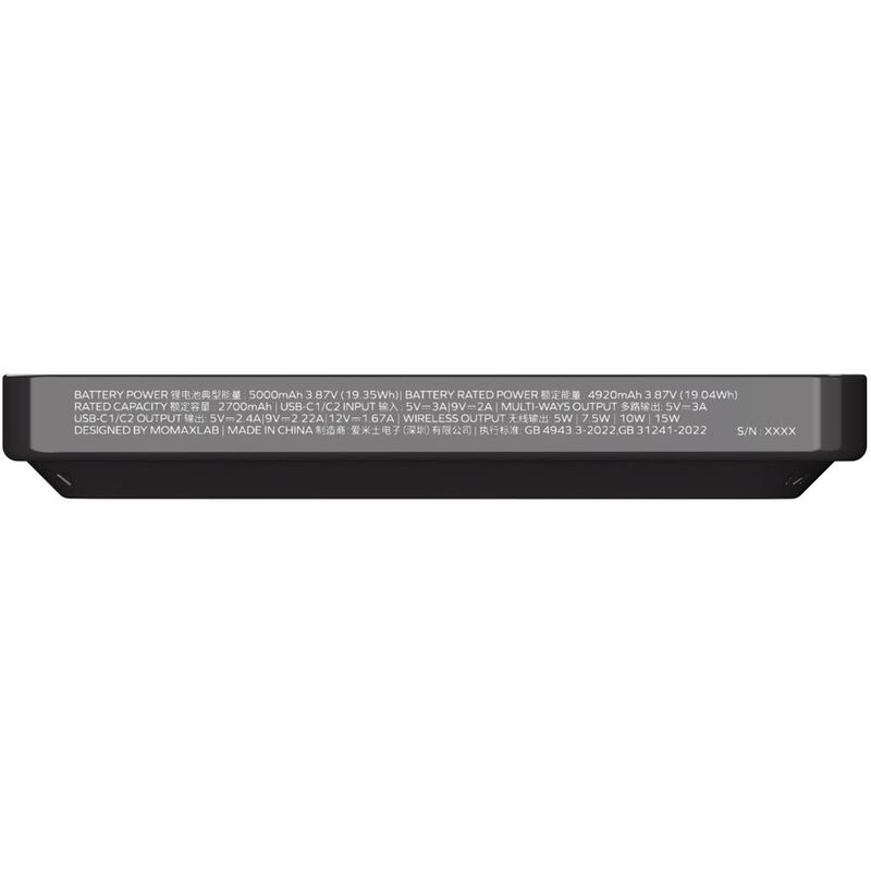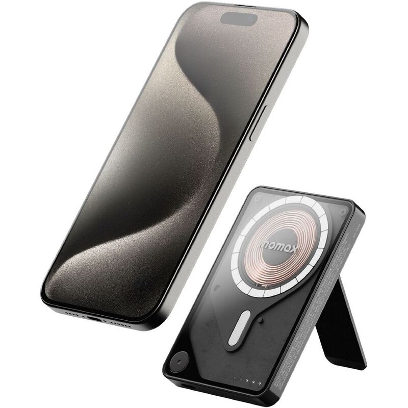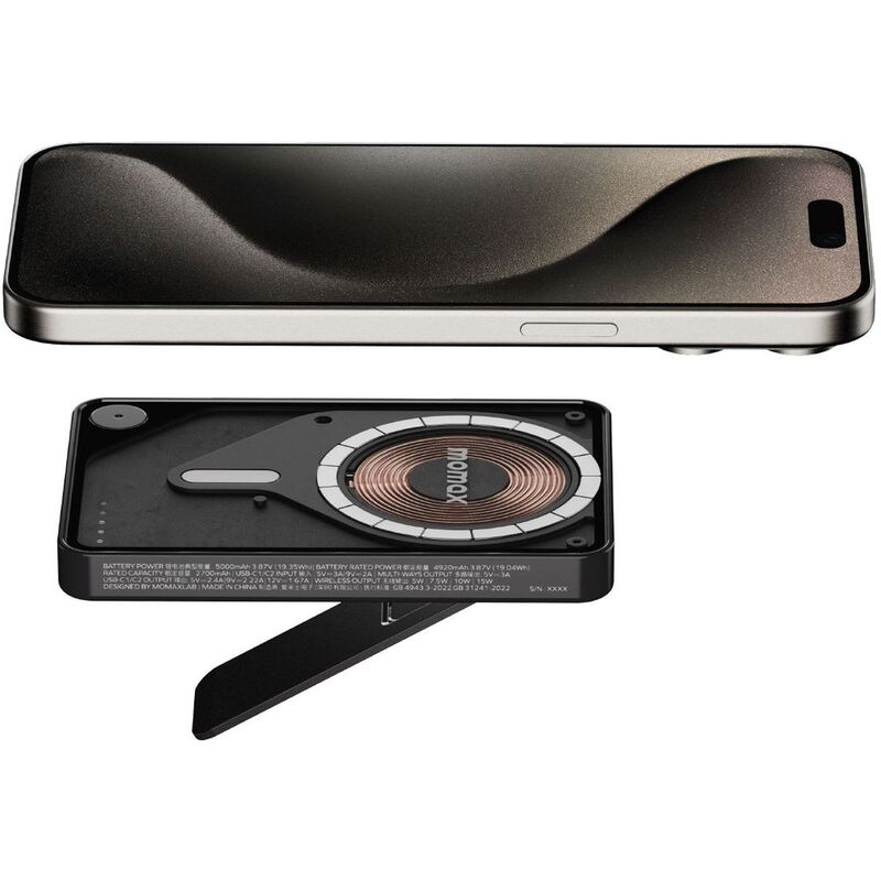 Momax 1-Power X Pro 5000mAh Magnetic Wireless Power Bank With Stand And Built-In USB-C Cable - Black