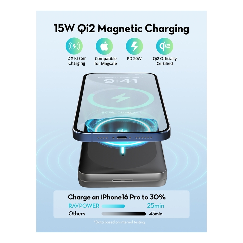 • 15W Qi2 Magnetic Charging