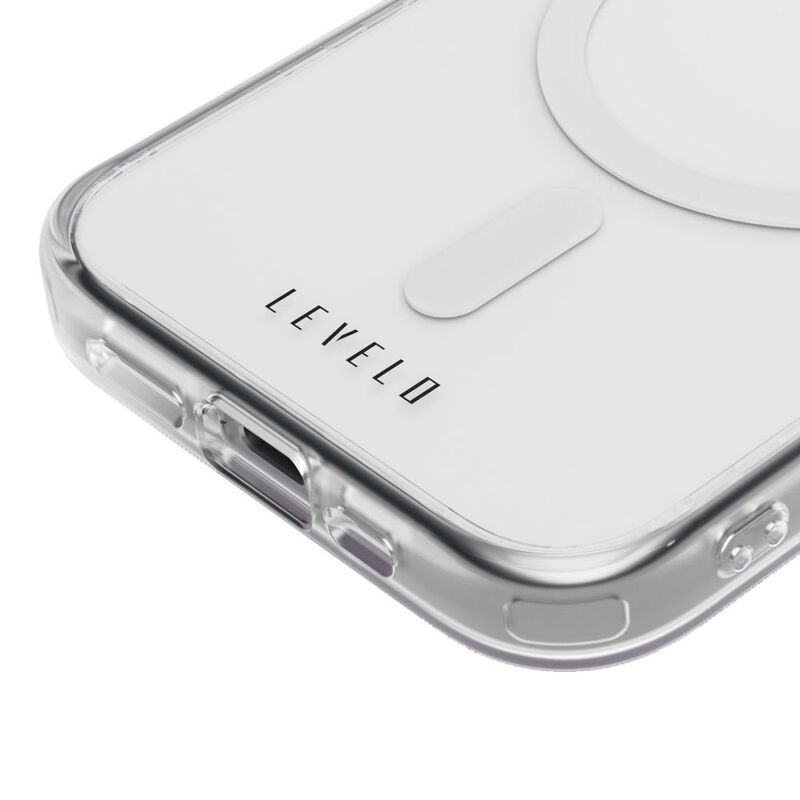 The Levelo MagSafe Solo Case appears to combine protection with the convenience of MagSafe technology. The hybrid material, reinforced corners, shock-absorbent protection, and shock-proof edges emphasize impact resistance, while MagSafe compatibility adds versatility to the case's functionality. The high transparency and anti-scratch properties contribute to maintaining the aesthetic appeal of your device.