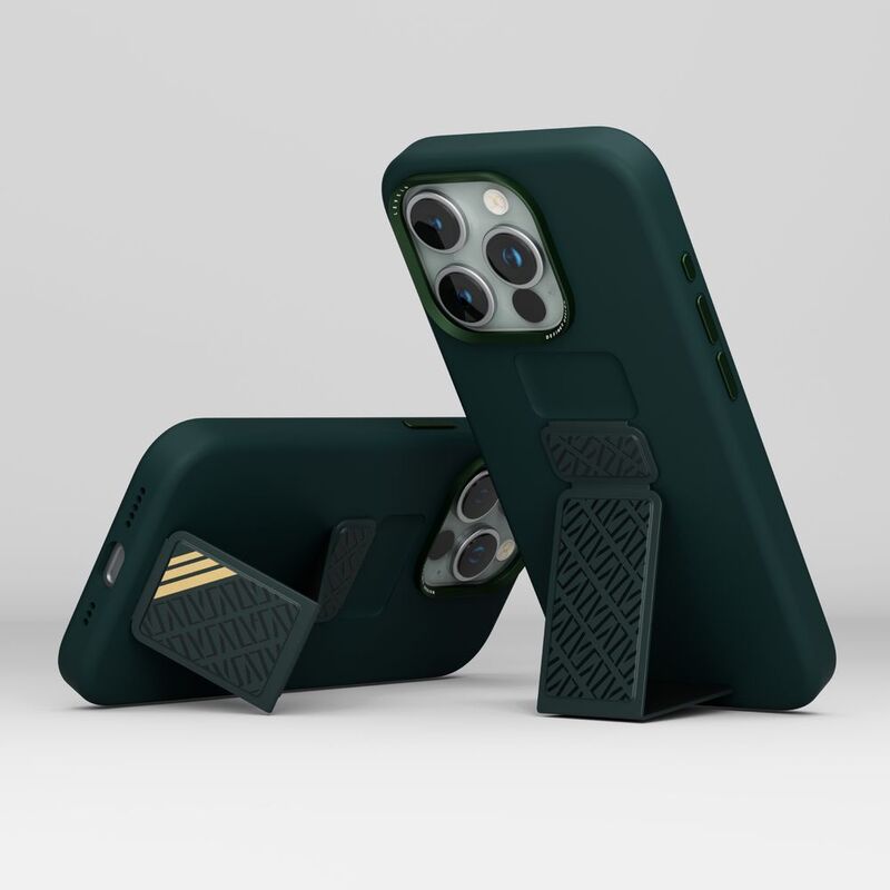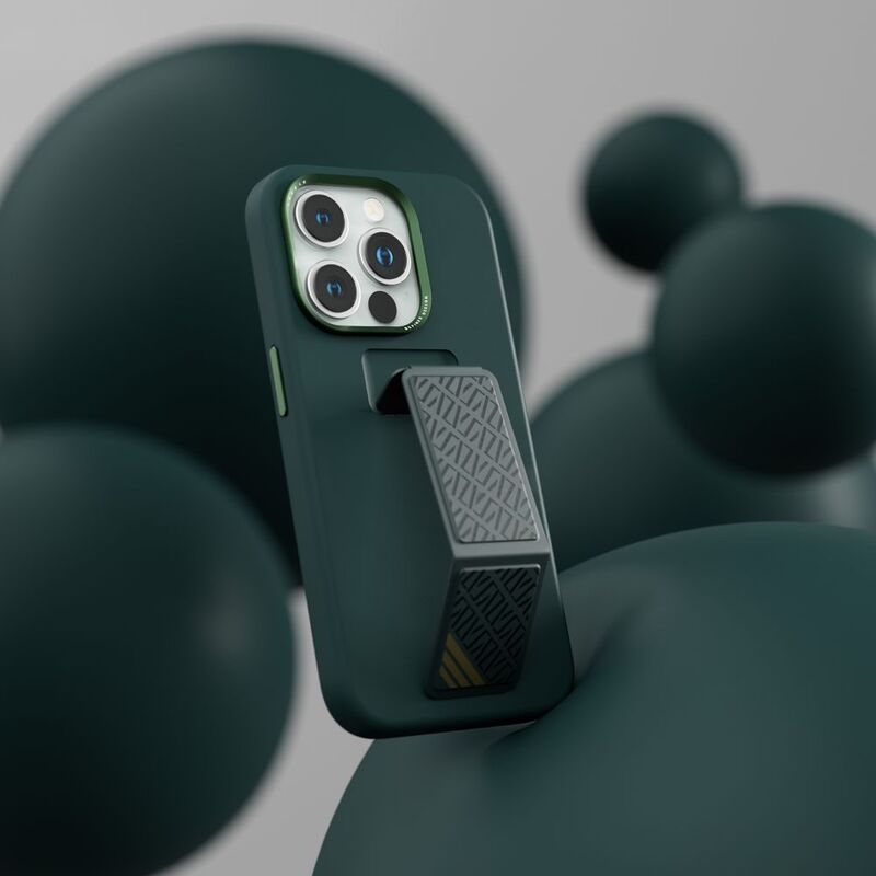 Levelo Morphix Silicone Case With Leather Grip For iPhone 15 Pro Max - Green