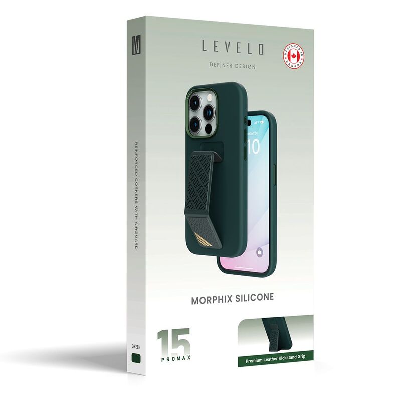 The Levelo Morphix Silicone Case with Leather Grip is a protective phone case that combines functional features with an appealing design. This case aims to provide protection and convenience for your smartphone. Here's an overview of the key features: