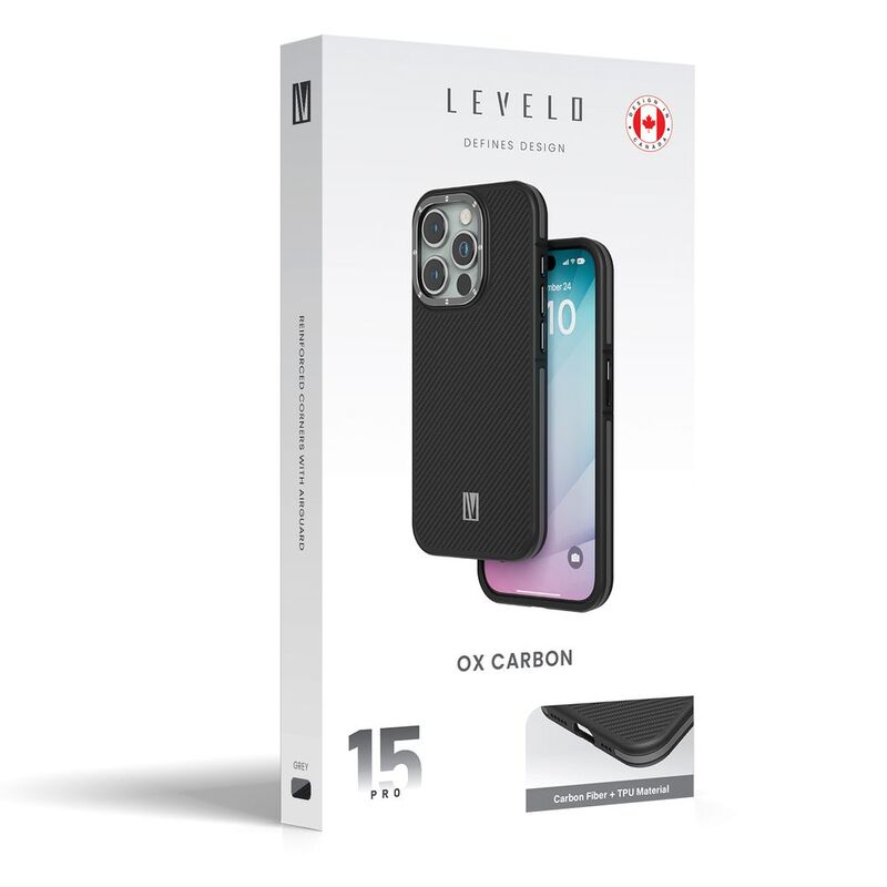 The Levelo Ox Carbon Case is a protective phone case that offers a combination of durability, style, and compatibility with MagSafe technology. Here's a breakdown of the key features of this case: