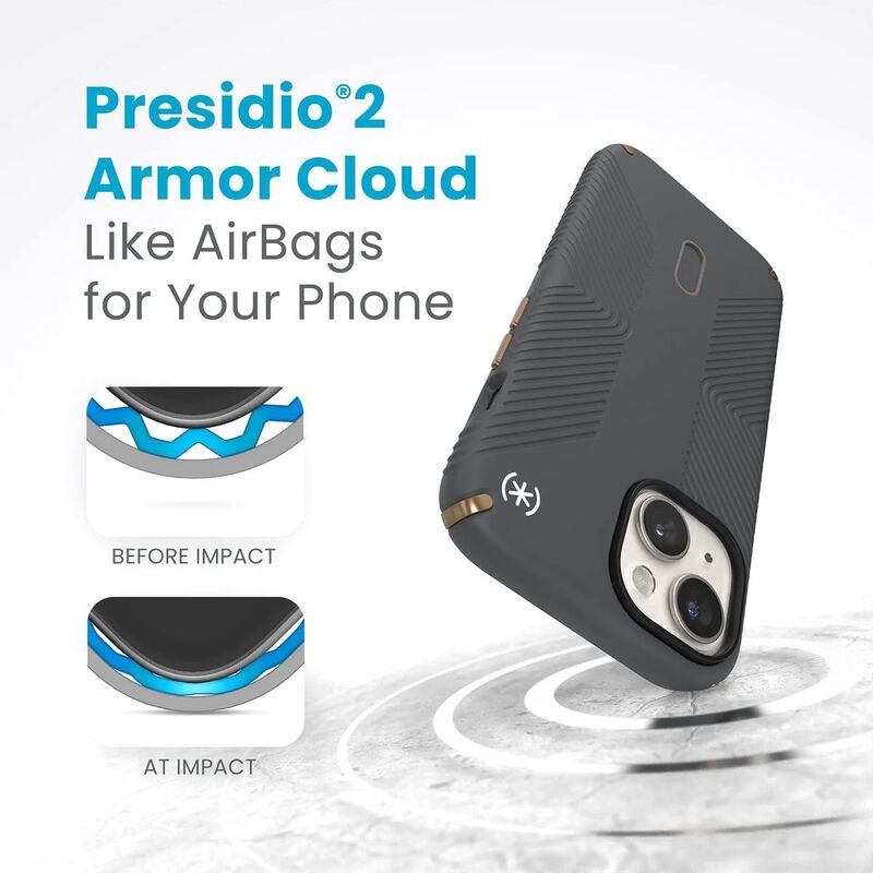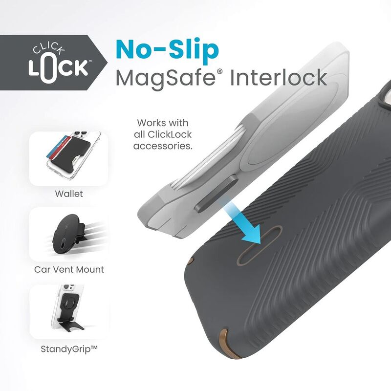 Speck Presidio2 Grip Magsafe with Clicklock iPhone 15 Case - Charcoal Grey/Cool Bronze