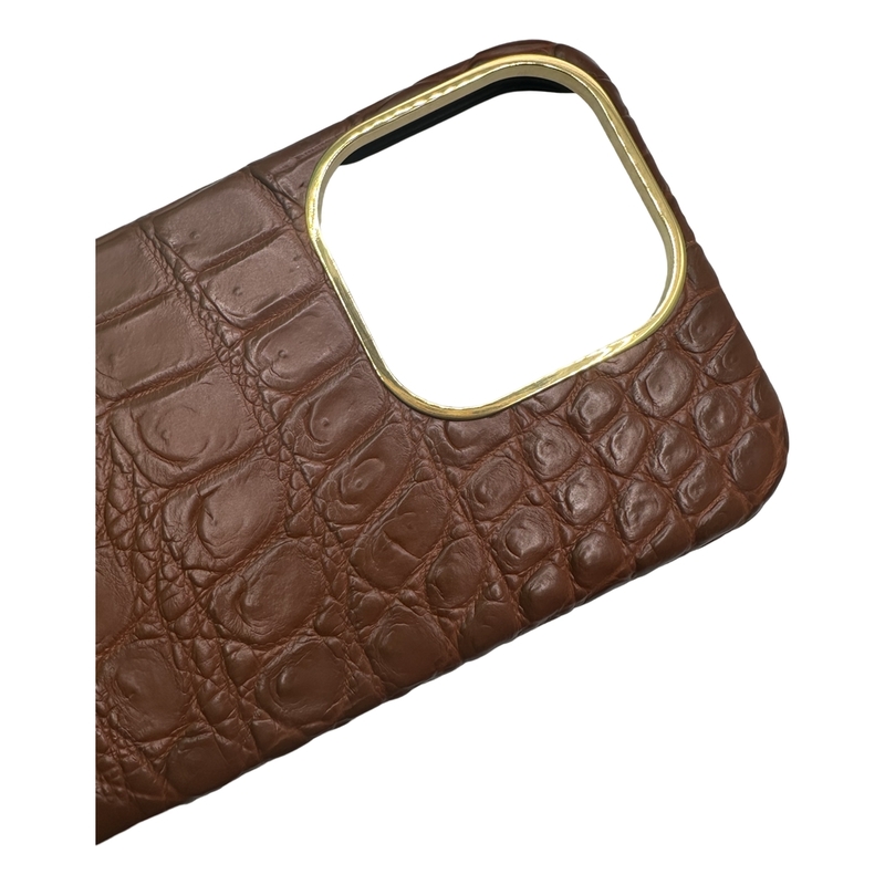 Aurora Concepts Brown Siam Crocodile Leather iPhone 16 Pro Case