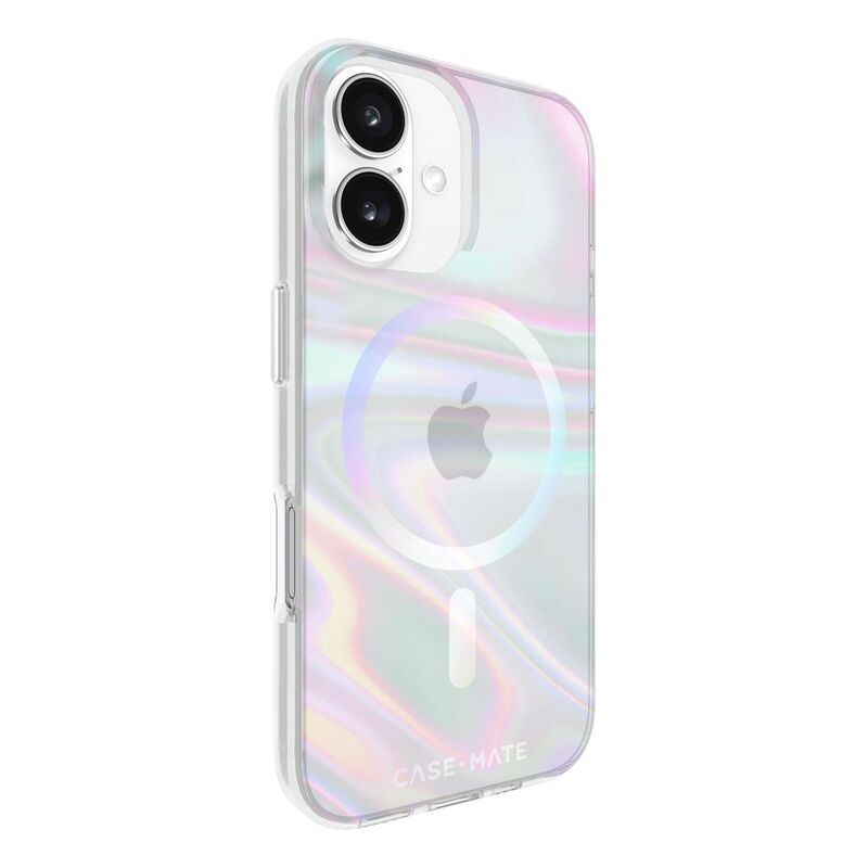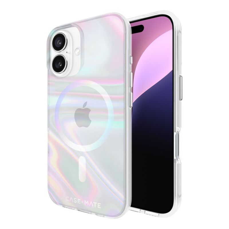 Case-mate Soap Bubble for the iPhone 16 is so fresh and so clean. If you’re looking for an eye-catching clear phone case, this one’s for you. The Soap Bubble™ iridescent swirl gives off the dreamiest rainbow vibes.. This case also includes built-in magnets that allow you to simply snap on your MagSafe charger and accessories for the fastest wireless charging experience.