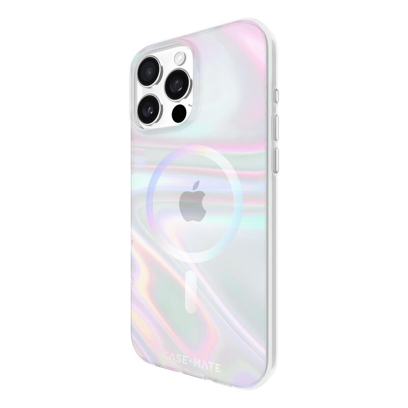 Case-mate Soap Bubble for the iPhone 16 Pro Max is so fresh and so clean. If you’re looking for an eye-catching clear phone case, this one’s for you. The Soap Bubble™ iridescent swirl gives off the dreamiest rainbow vibes.. This case also includes built-in magnets that allow you to simply snap on your MagSafe charger and accessories for the fastest wireless charging experience.