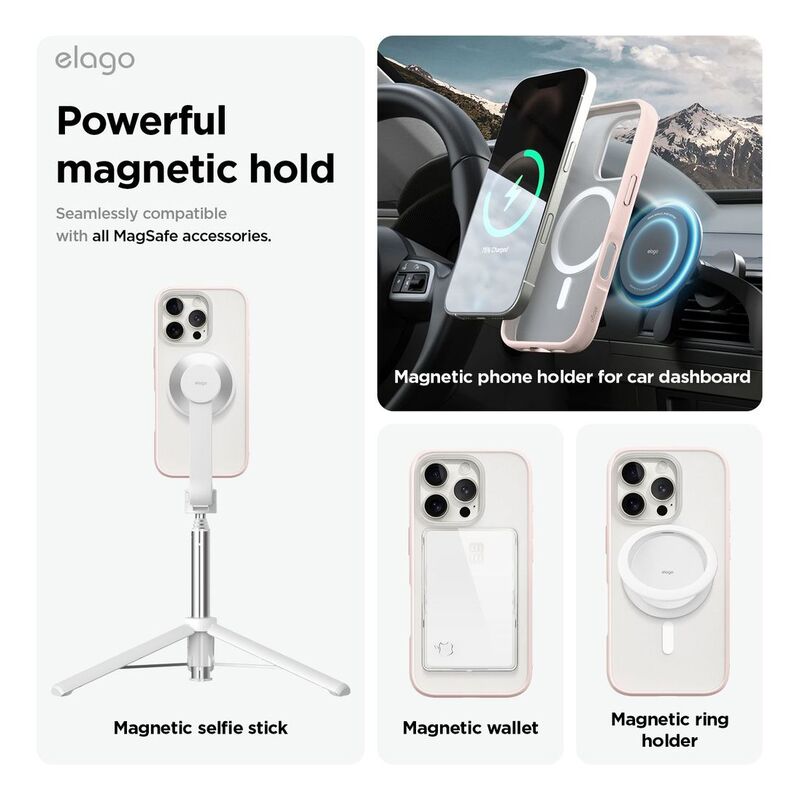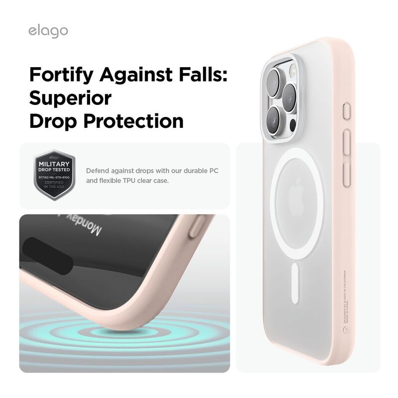 Elago Magnetic Hybrid case for iPhone 16 Pro - Soft Feeling Clear / Lovely Pink