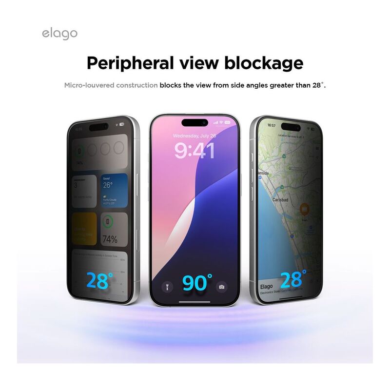 Elago Privacy Glass Screen Protector Compatible for iPhone 16 Pro