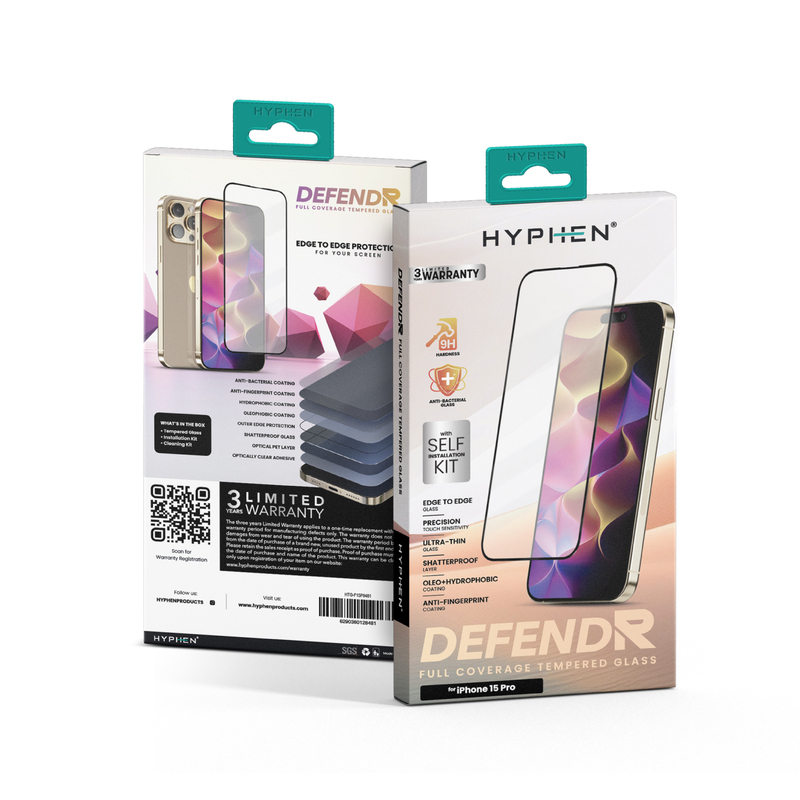 HYPHEN Defendr Full Coverage Tempered Glass with Applicator for iPhone 15 Pro - 6.1-Inch