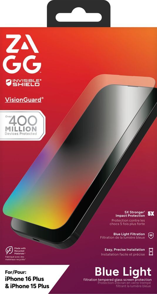 Zagg Invisibleshield Glass Elite Visionguard Screen Protector for Apple iPhone 16 Plus/ 15 Plus