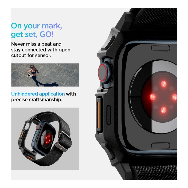 Lite Fit Pro keeps your Apple Watch protected and ready to go. Its lightweight unibody frame guards your displays on all corners, while its sporty band flexes for all-day comfort.