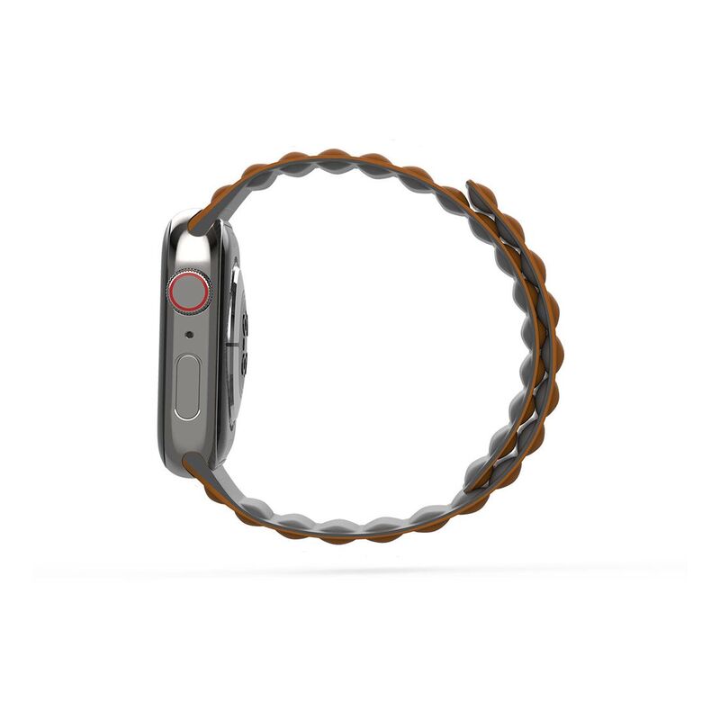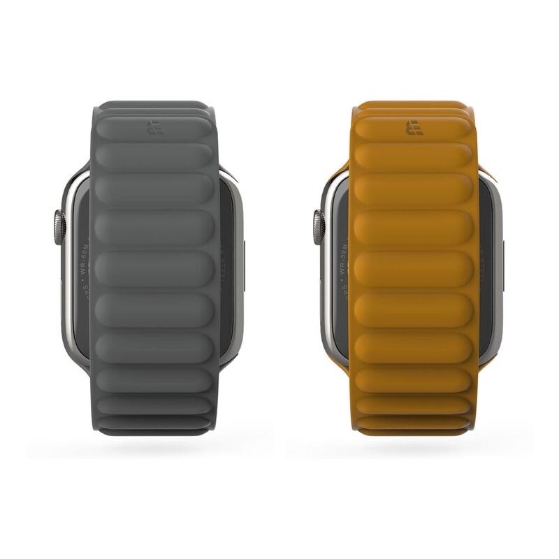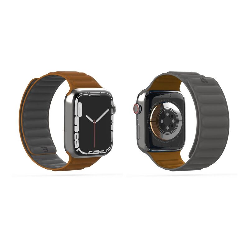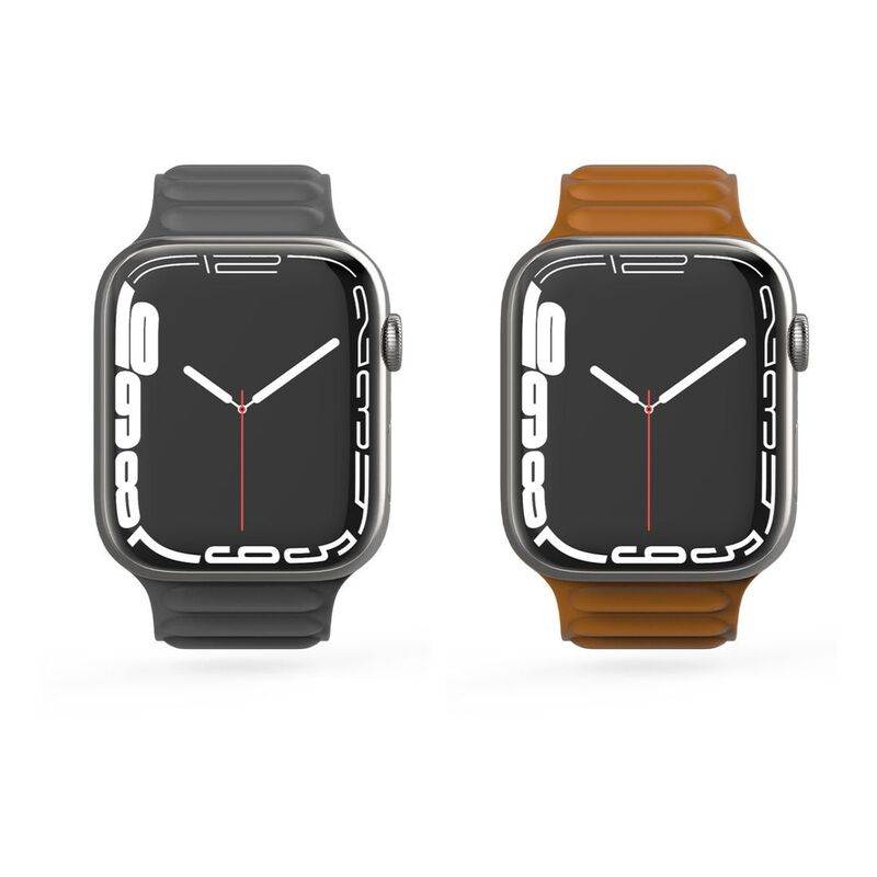 BAYKRON Premium Soft Touch Silicone Magnetic Band Saddle Brown and Steel Grey for Apple Watch 42/44/45 mm