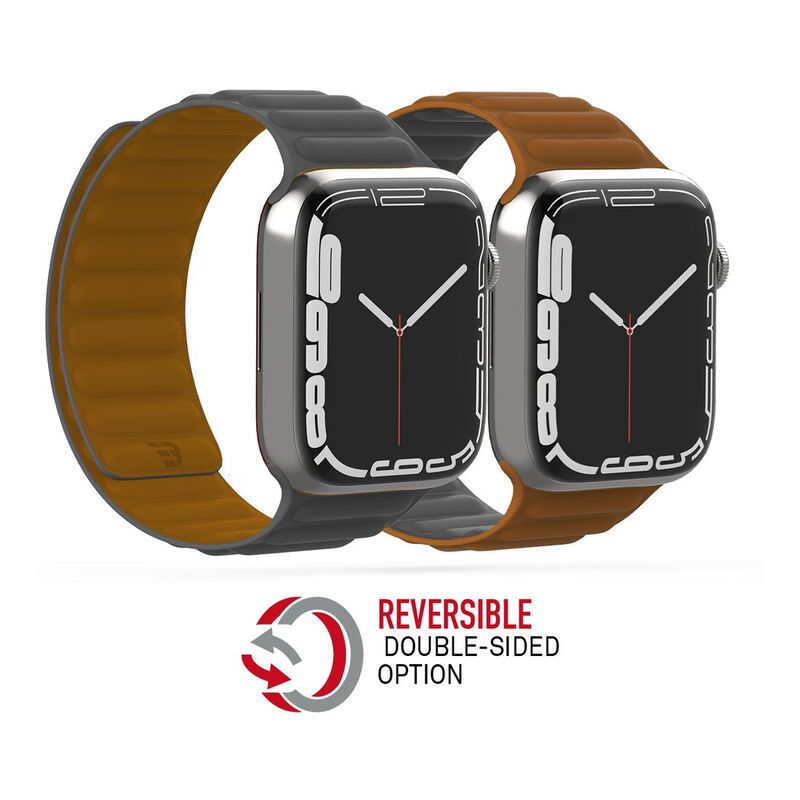 The BAYKRON Premium Soft Touch Silicone Magnetic Band for Apple Watch combines a high-performance molded elastomer with embedded magnets for the ultimate in simplicity and elegance. The soft yet durable silicone drapes comfortably around your wrist, is naturally sweat and water resistant, and is suited for any environment. An innovative reversible design creates for two color options in one product, allowing you to mix it up based on your style.